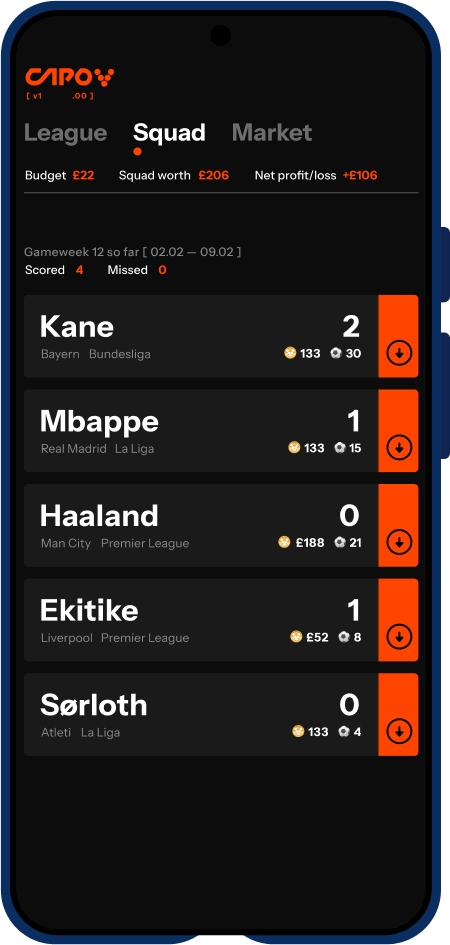 Build your team of 5 strikers and compete with friends to become top Capo.